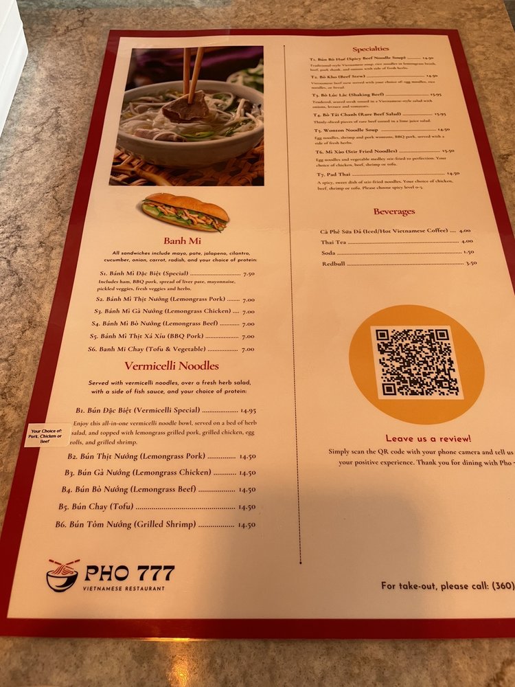 Welcome to Pho 777 in Vancouver, WA, where Vietnamese comfort food shines. Nestled at 212 NE 164th Ave, this casual dining spot blends authentic flavors with a cozy atmosphere, making it ideal for both lunch and dinner. The menu boasts an impressive lineup of items, highlighted by their renowned Pho Special, featuring an assortment of beef cuts served in a savory broth.